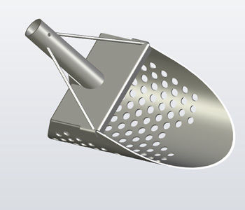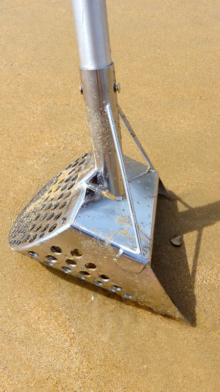 8. TAILLE OPTIMALE DES TROUS - Ils permettent : 1/ l'entrée du sable massivement, 2/ évacuation du sable et de l'eau rapidement,  3/ pas d'effet de succion, on ressort la pelle aisément, 4/ récupération des cibles, même les plus petites grace aux deux tailles de trous.