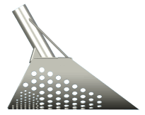 9. EFFET DE SUCCION - Grâce au design de la pelle, au polissage manuel et son bain électrolytique, son point d'équilibre parfait, la taille des trous, l'angle du manche, il n'y a plus d'effet de succion, même par 50 cm de fond.